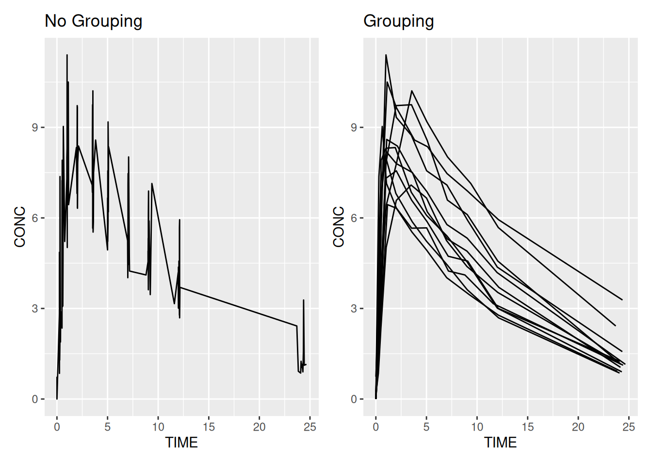 aes(x = TIME, y = CONC, group = SUBJID)) +