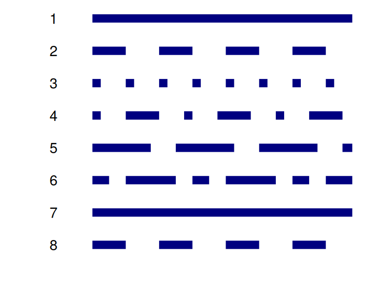 R also has a selected number of dotted and dashed lines to choose from.