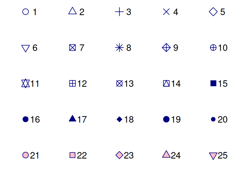 R has a number of inbuilt shapes to choose from, as shown by the following graphic.